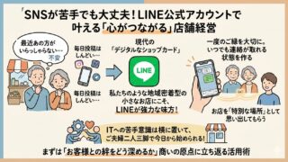 LINEを使った店舗集客のコツを初心者向けに解説。SNSが苦手な夫婦経営の店舗でも、常連客を増やし売上を安定させる具体的な運用術を紹介します。友だち登録の増やし方からメッセージの書き方まで、今すぐ実践できる内容です。